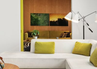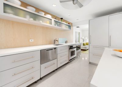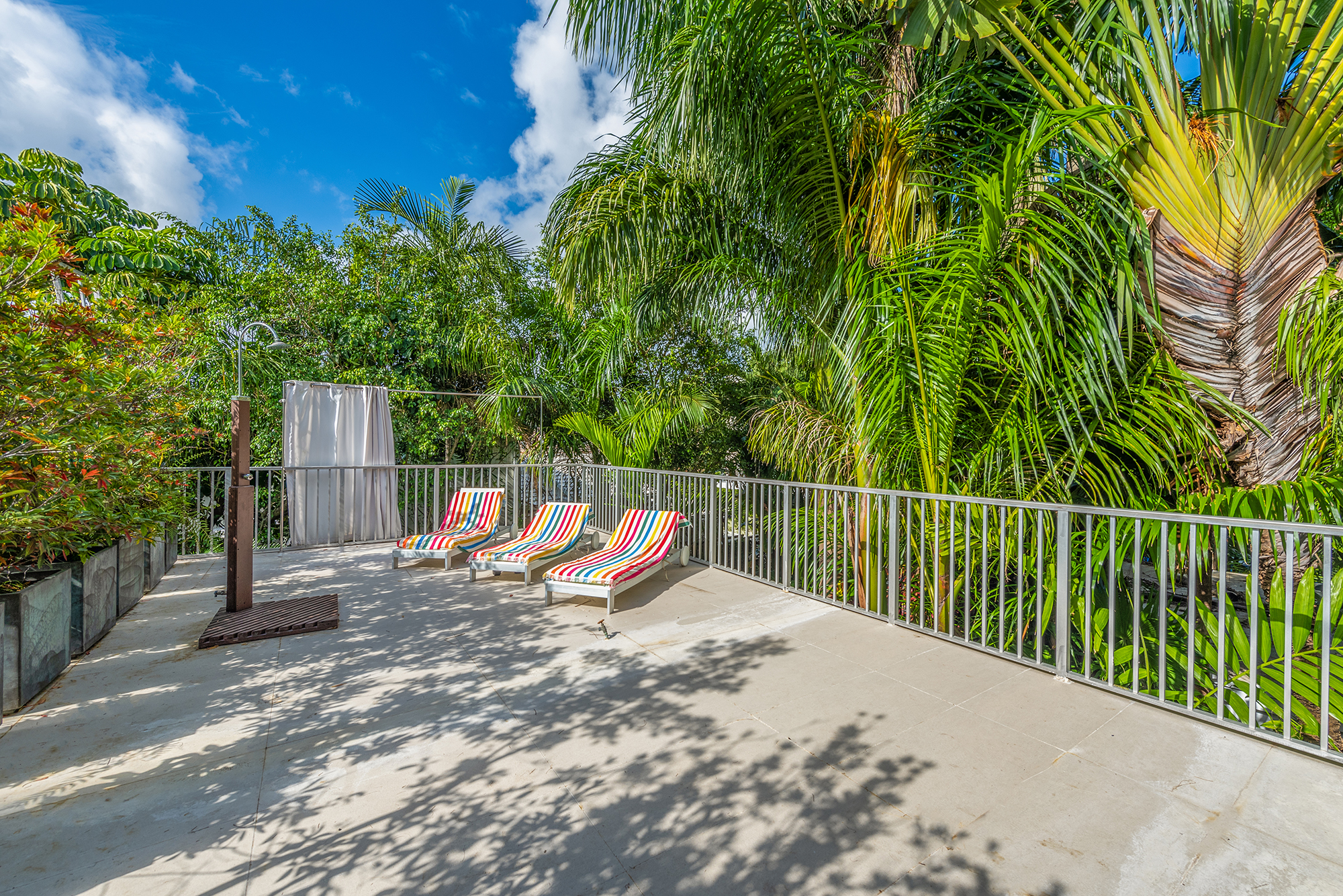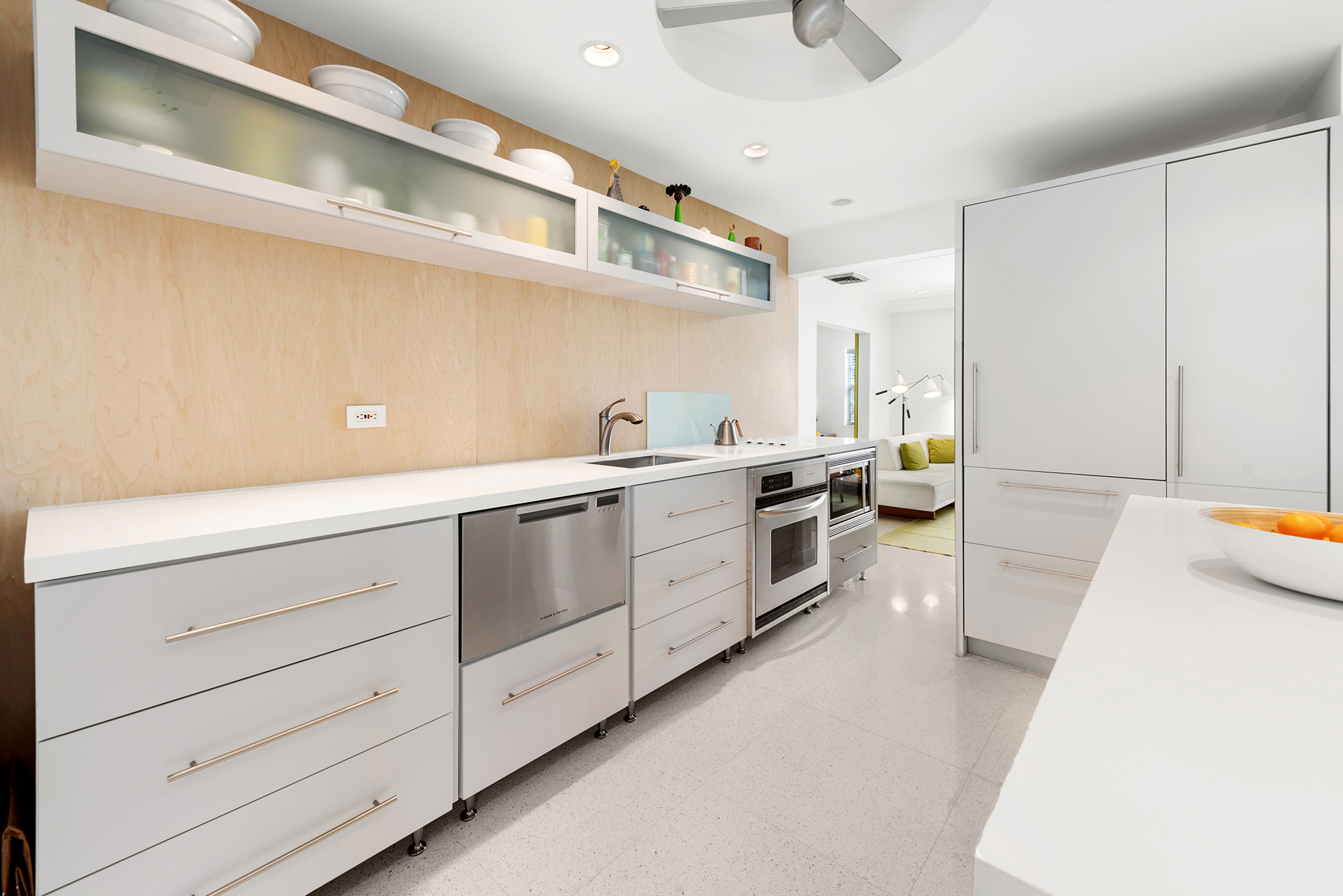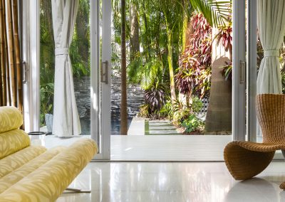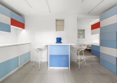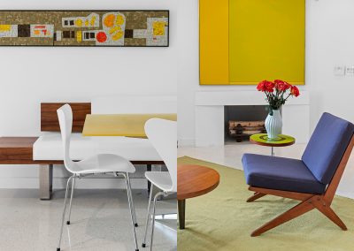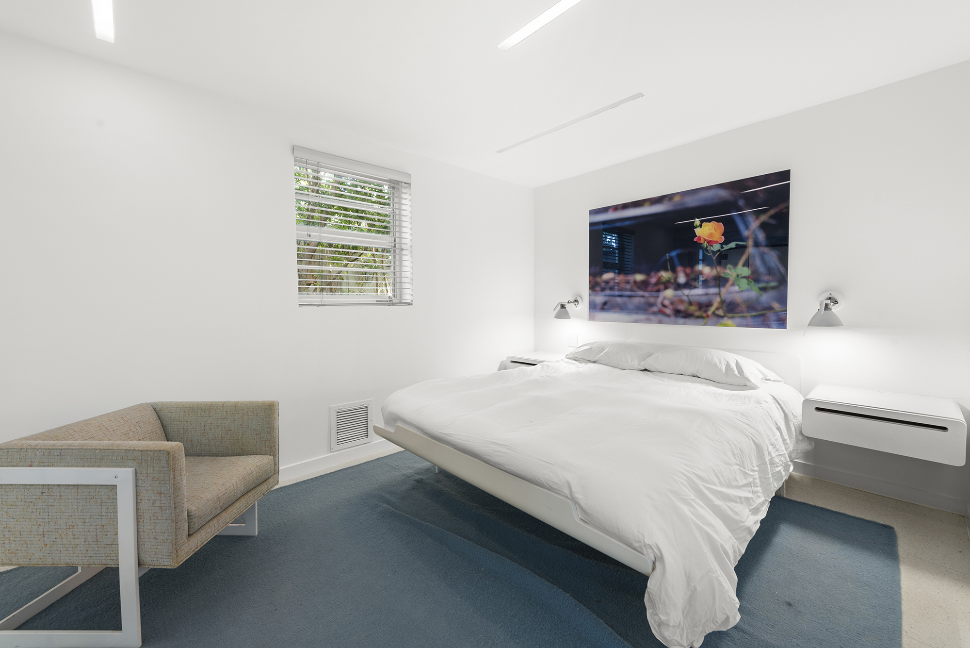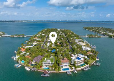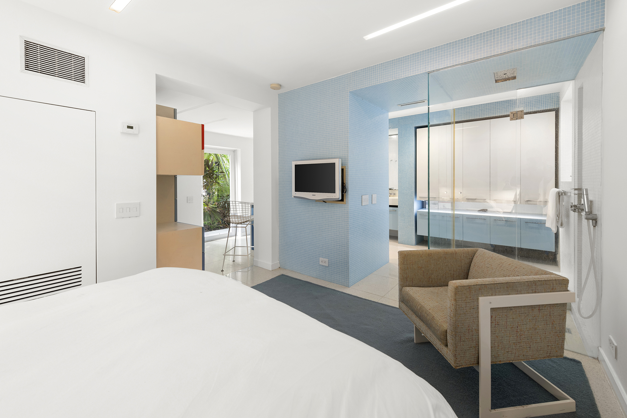This sunny and sophisticated Art Deco bungalow plus guesthouse on San Marino Island offers a midmod environment that bursts with color. Enjoy the privacy of a lush backyard with pool and garden complemented by a mid-century interior design by renowned Robert Kaner. Representing Miami Beach’s ‘style moderne’ at its finest, this is an opportunity to own a piece of history on the Venetian Islands. Ornamental details and vibrant, citrusy colors throughout create a low-key ode to 1930s tropical modernism with a touch of minimalist exuberance. A bright living space with white terrazzo flooring welcomes you into an open layout. The den, adorned with custom, vintage pieces, offers a tranquil escape with its warm, subdued colors, a contrast to the vibrant allure throughout the rest of the home.